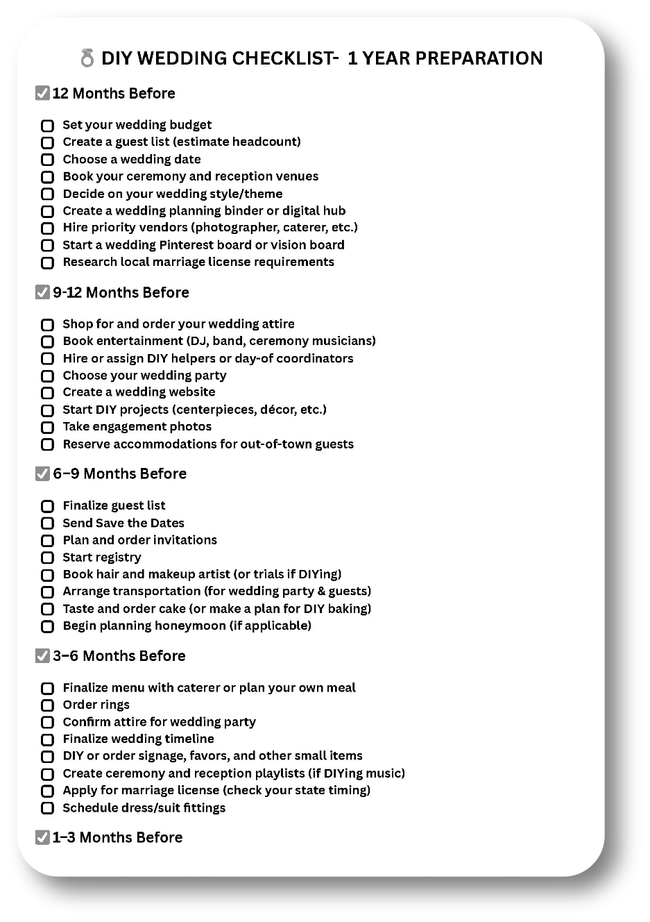 âŞď¸ 1-Year Wedding Prep Checklist